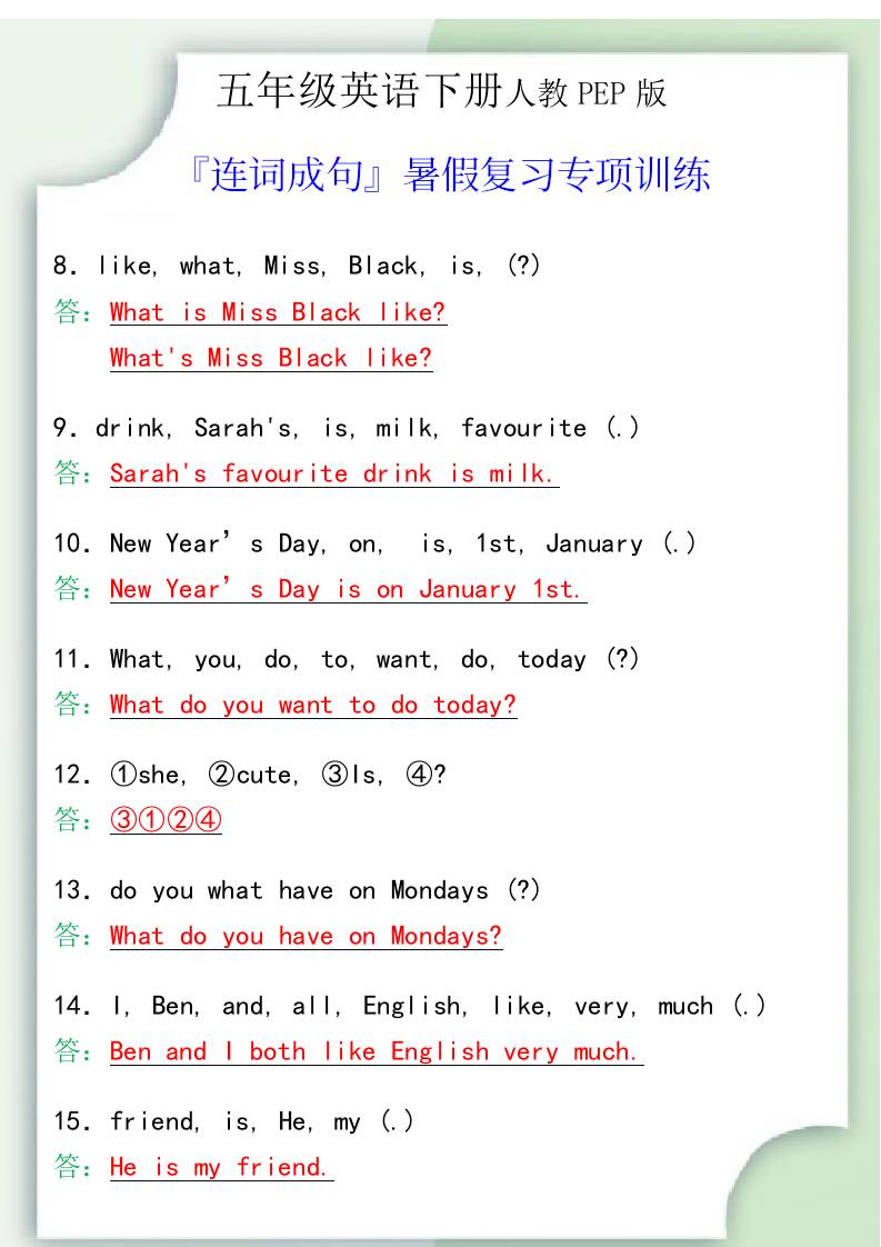 五年级英语下册『连词成句』暑假复习专项训练酷搜笔记9小时前更新关注私信0332221 ——预览已结束,还剩2页未读——开通会员后可免费下载高清完整文档 五年级英语下册『连词成句』暑假复习专项训练此内容为付费资源,请付费后查看赞助分1.99赞助分销免费赞助合伙人免费立即购买您当前未登录!建议登陆后购买,可保存购买订单资源来自网络仅供学习下载付费资源已售 23© 版权声明 本站收集的资源仅供内部学习研究软件设计思想和原理使用,学习研究后请自觉删除,请勿传播,因未及时删除所造成的任何后果责任自负。 如果用于其他用途,请购买正版支持作者,谢谢!若您认为「52zixi.cn」发布的内容若侵犯到您的权益,请联系站长邮箱:312013005@qq.com 进行删除处理。 本站资源大多存储在云盘,如发现链接失效,请联系我们,我们会第一时间更新。 THE END五年级英语# 未读# 预览# 连词# 成句# 下册 喜欢就支持一下吧点赞221赞赏 分享QQ空间微博QQ好友海报分享复制链接收藏