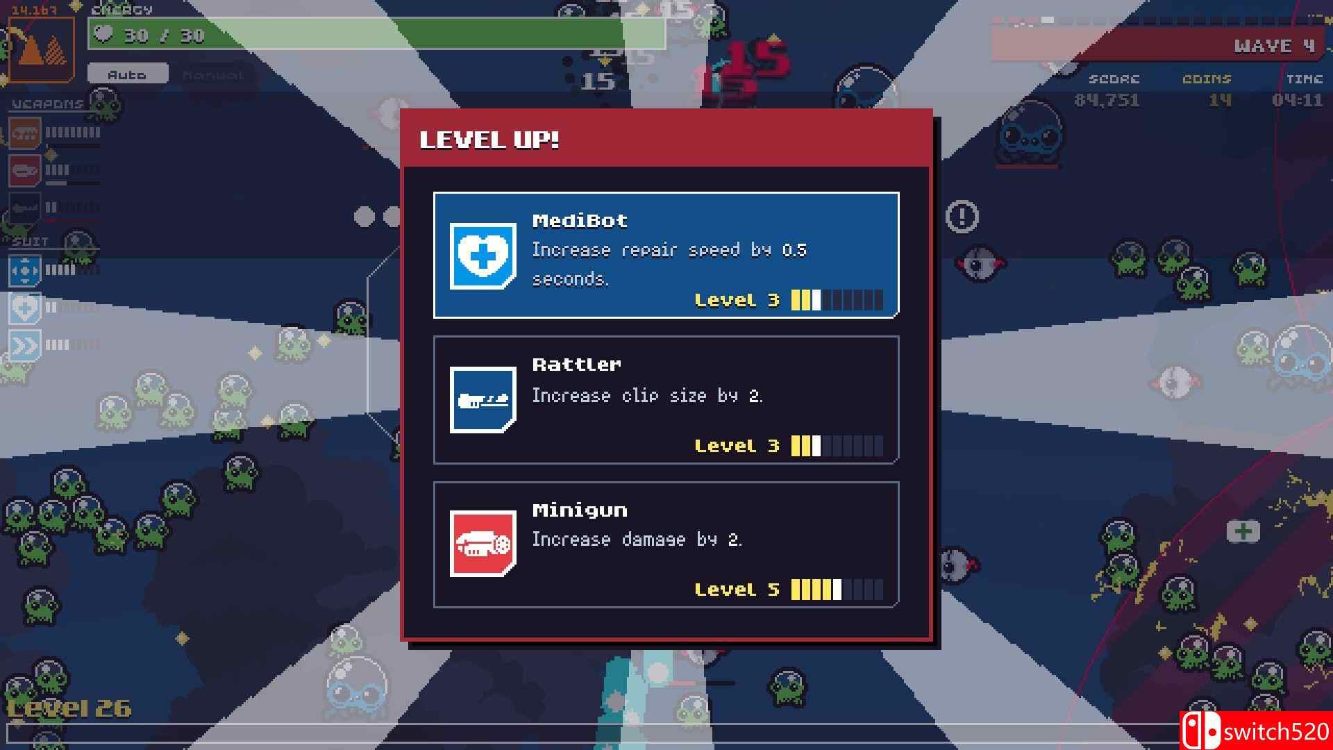 《机甲守护者》是一款动作冒险类(ACT)游戏,《机甲守护者》是一款结合了街机射击和类Roguelike元素的双摇杆生存射击游戏。玩家将驾驶先进的机甲战斗服,面对源源不断的外星入侵者,使用强大的武器进行反击。每次游戏都提供独特的挑战,玩家可以通过升级装备、解锁新机甲和技能,提升战斗力。switch520